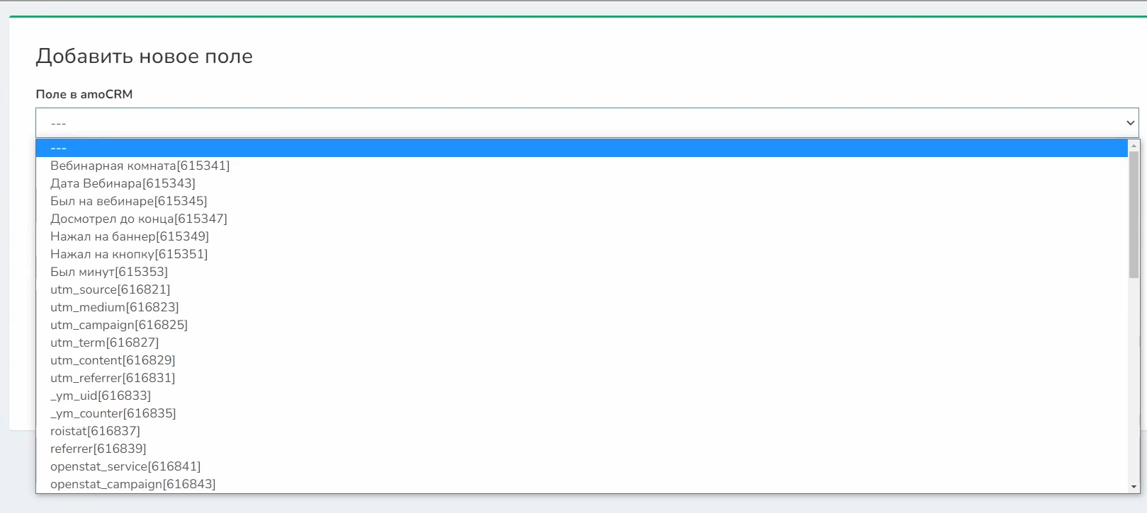 3 Выберите поле в amoCRM, куда будут переданы данные из дополнительного поля