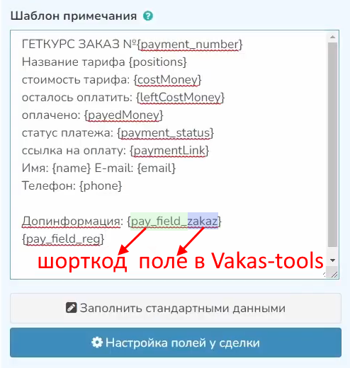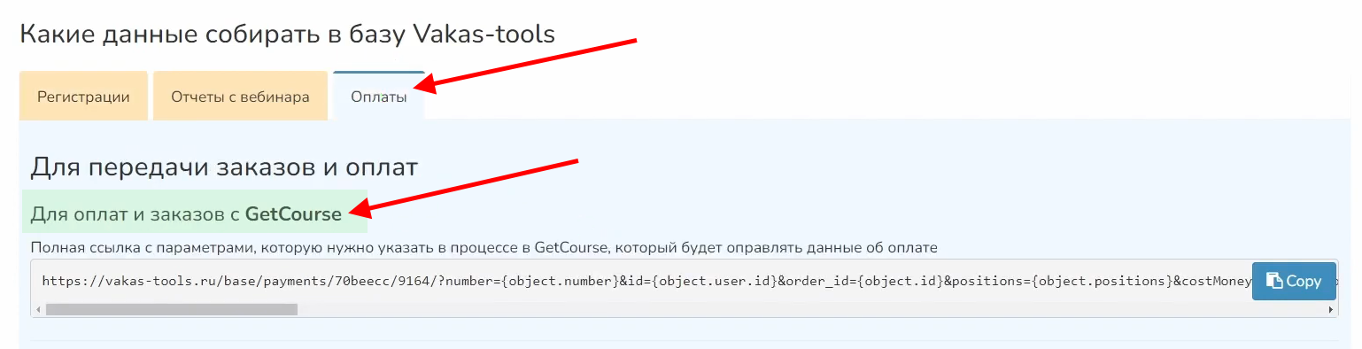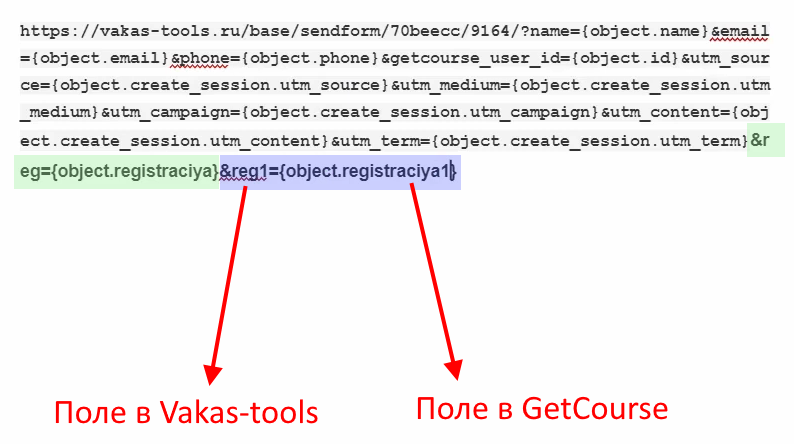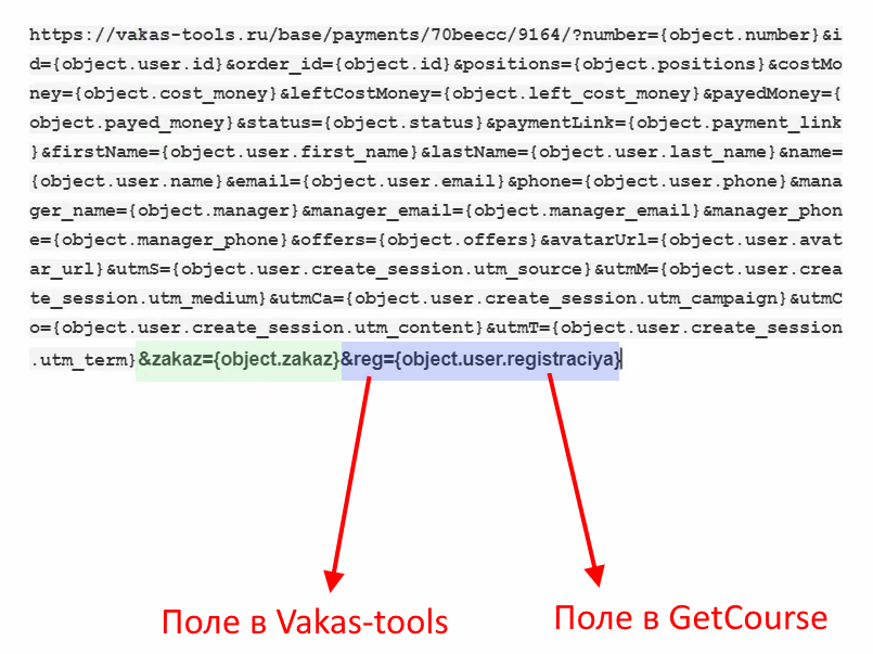 В ссылке будет указано из какого поля в Getcourse и куда в Vakas-tools будут передаваться данные.