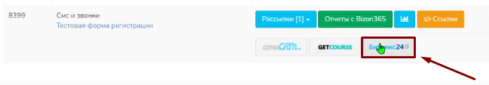 Нажимаете нужную вам CRM систему, мы покажем на примере Bitrix24, такие же настройки будут у amoCRM.