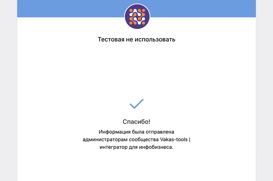 9. Если Лид-форма успешно подключена к Vakas-tools, появится сообщение об этом.
