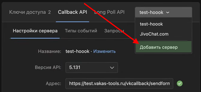 ВАЖНО! Возможно подключить до 10 серверов для Callback API, задать каждому из них отдельный набор событий и версию API.