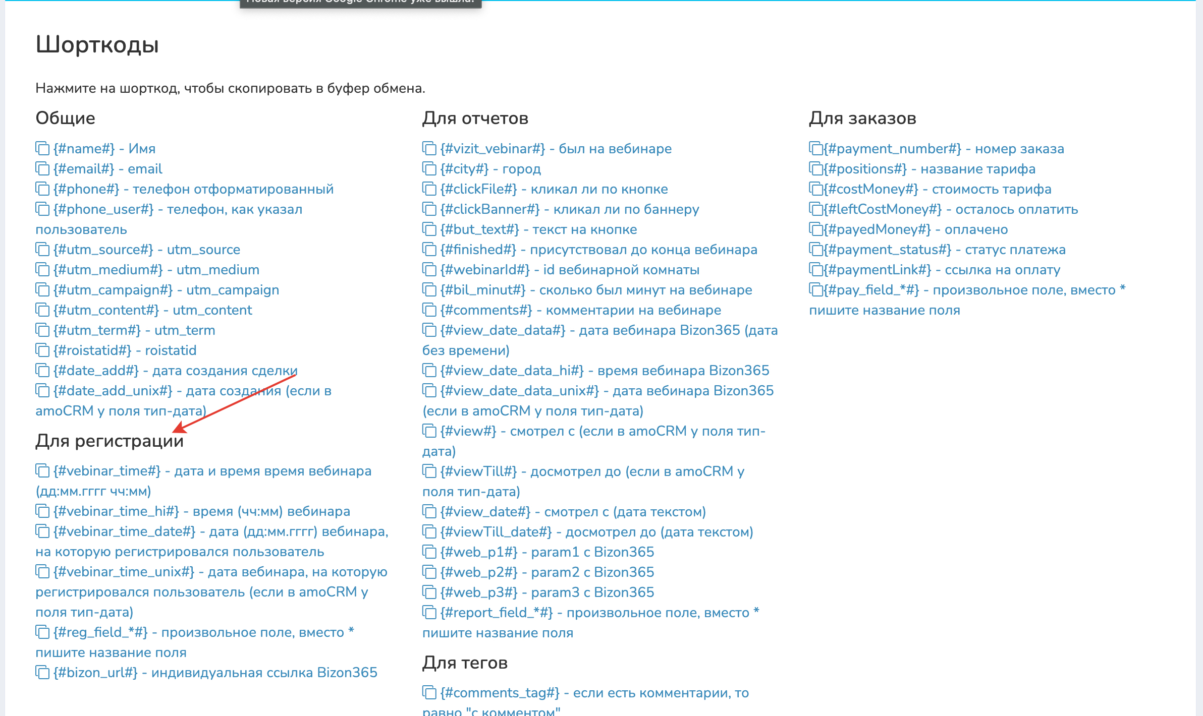 Или пропишите вручную, используем шорткод {#reg_field_*#} - где * (звездочка) - это ваше название переменной на латинице, которые вы прописали в Tilda.