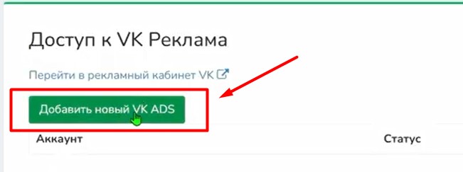 Нажимаем «Добавить новый VK ADS» → «Разрешить доступ».