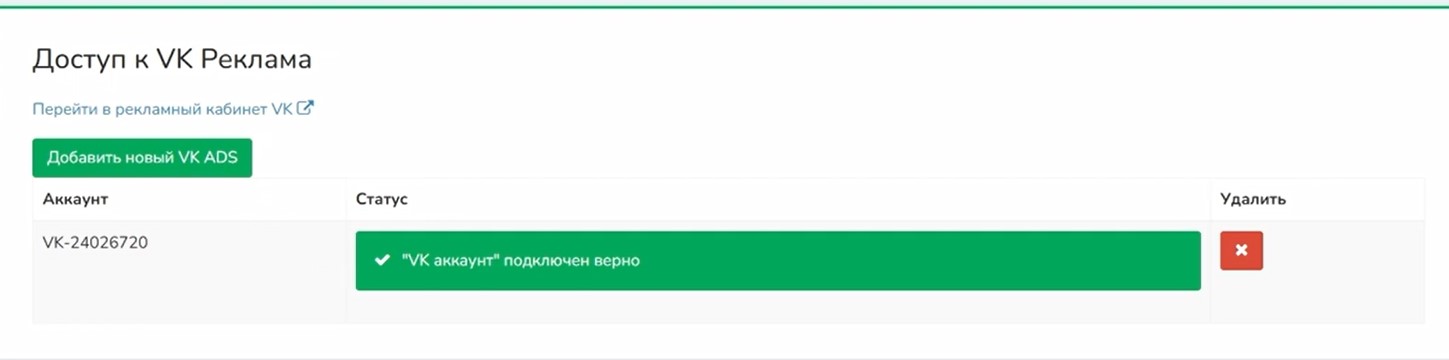 После этого ВК реклама добавляется в список доступов.