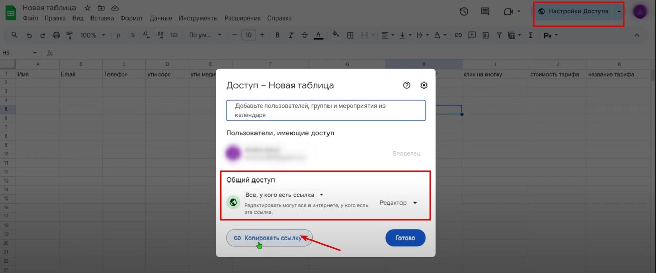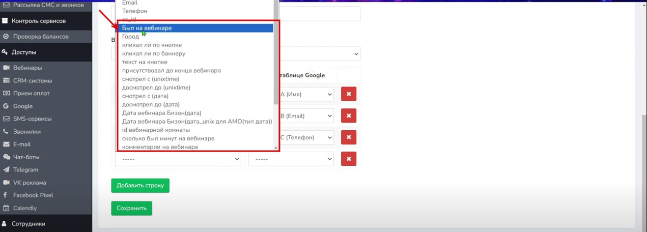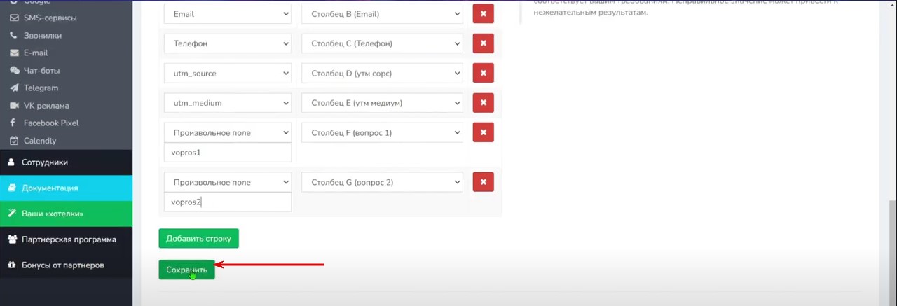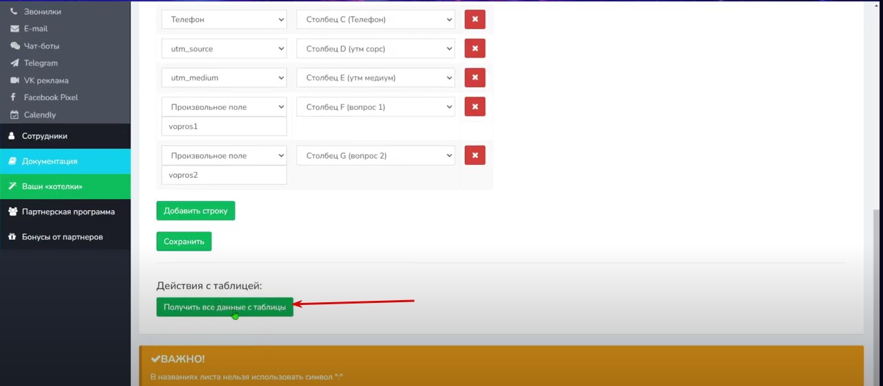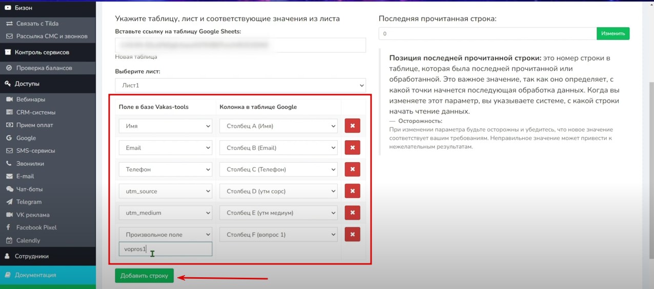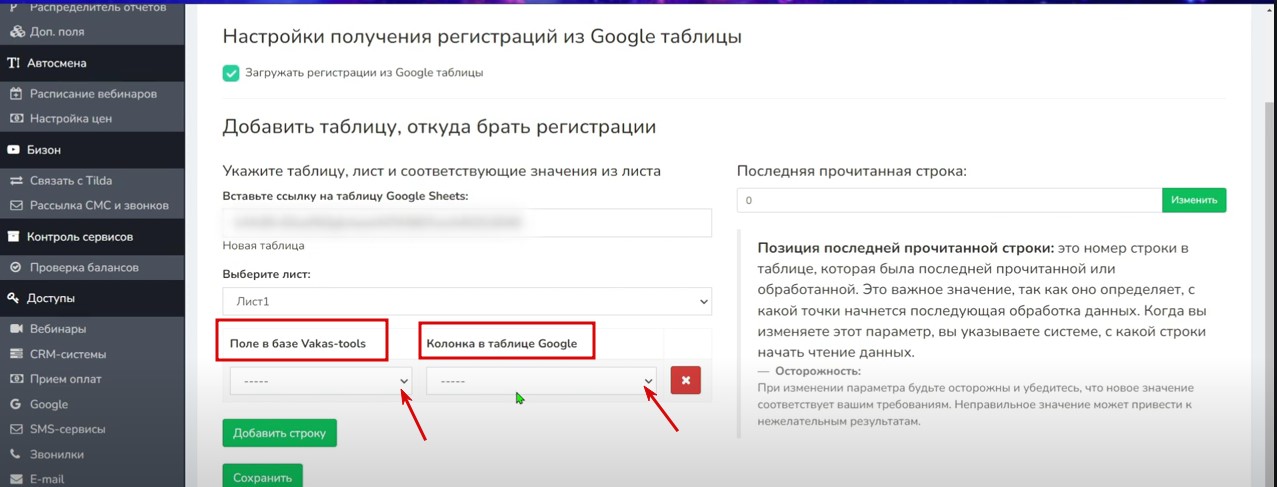 1 Ставим галочку «Выгружать пользователей в Google таблицу»