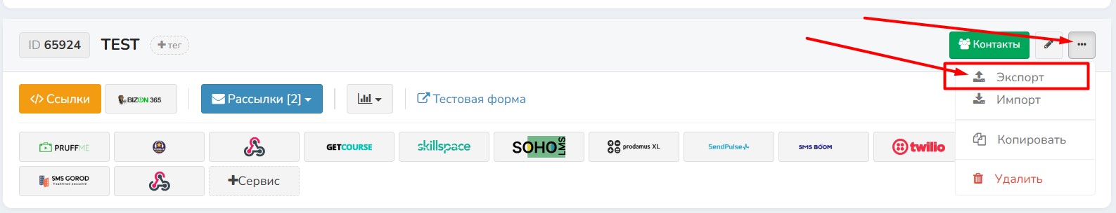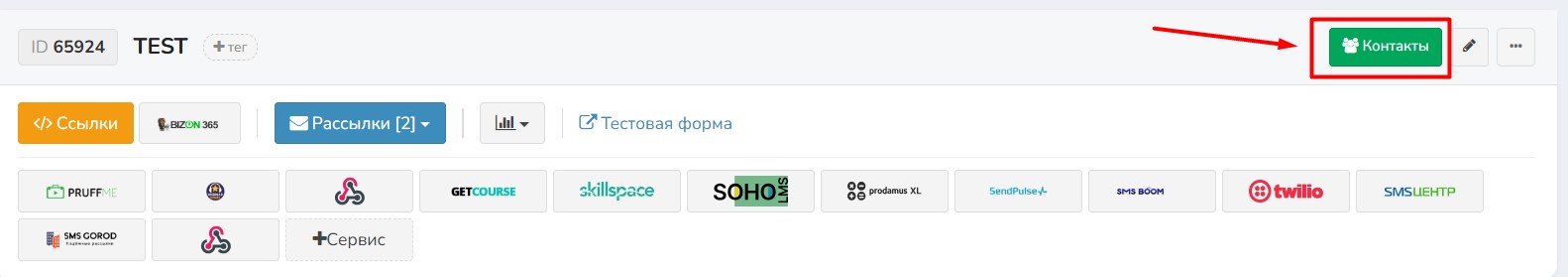 - Если сервисы не выбраны — данные отправляются во все подключённые сервисы (как если бы контакт попал в систему заново).