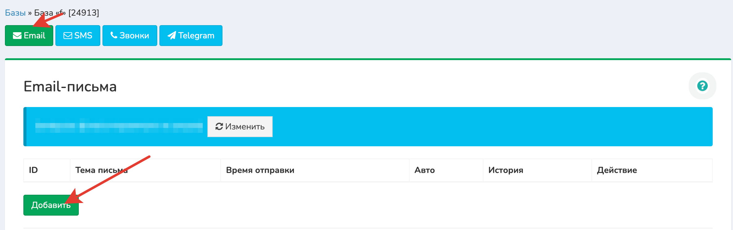 1. Заходите в редактирование базы, у которой хотите создать рассылку.