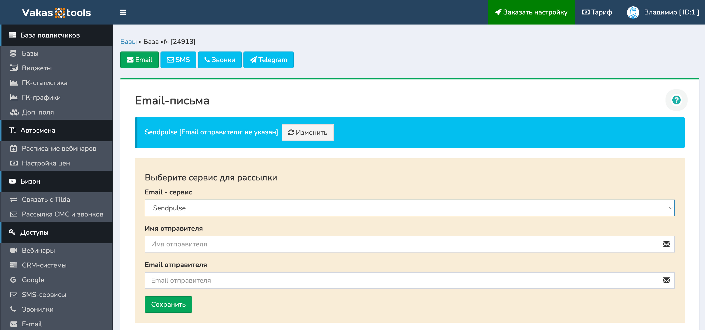 Теперь возвращаемся в Vakas-tools и добавляем наши письма.