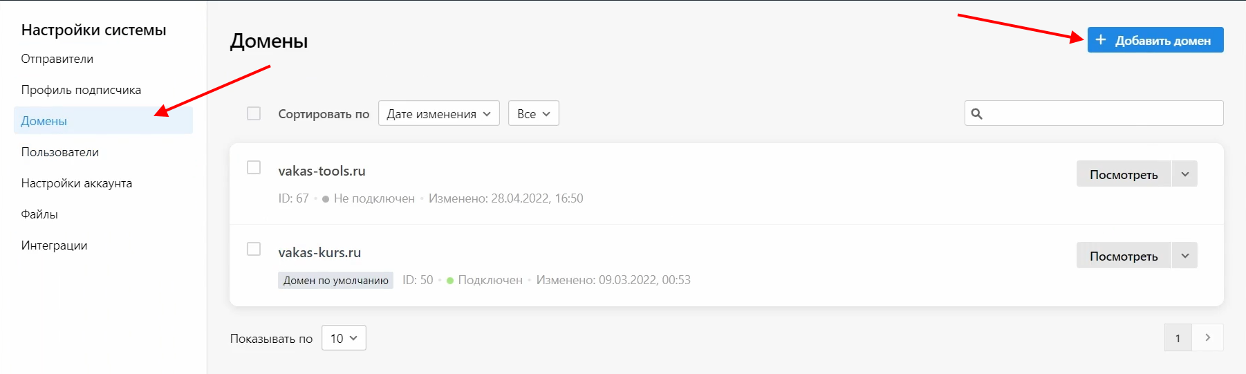 1 Перейдите в Sendsay. Зайдите в «Настройки системы» — «Домены»