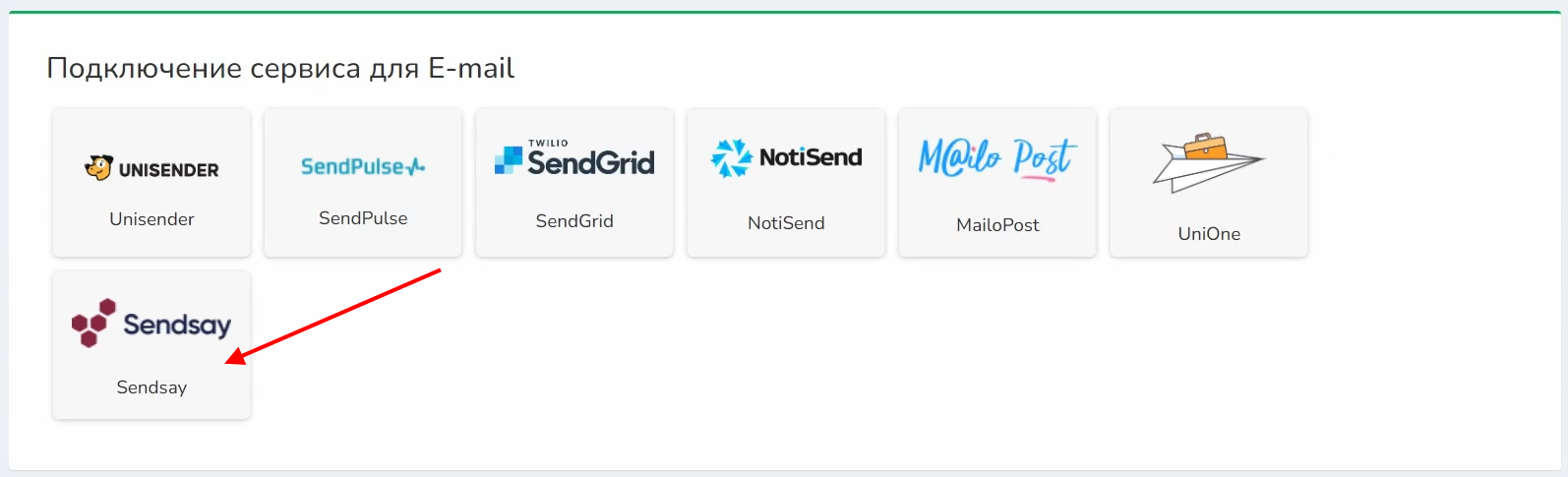 2 Выбираете сервис «Sendsay»