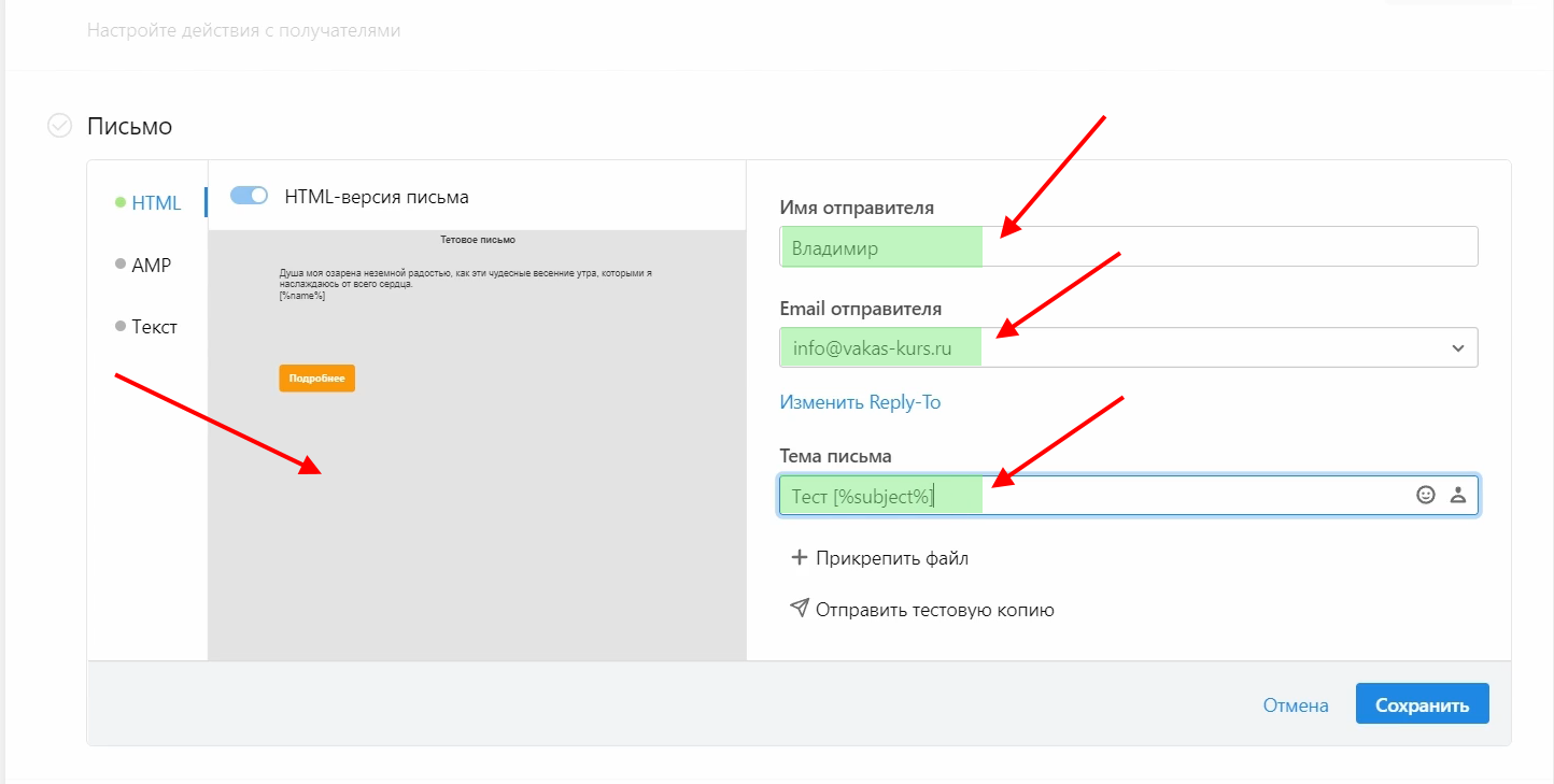 Настройка шаблонов писем для рассылки