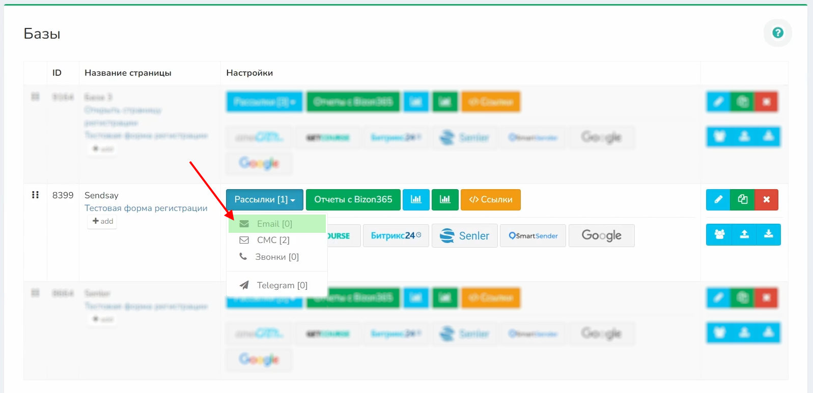 1 Заходите в редактирование базы, у которой хотите создать рассылку