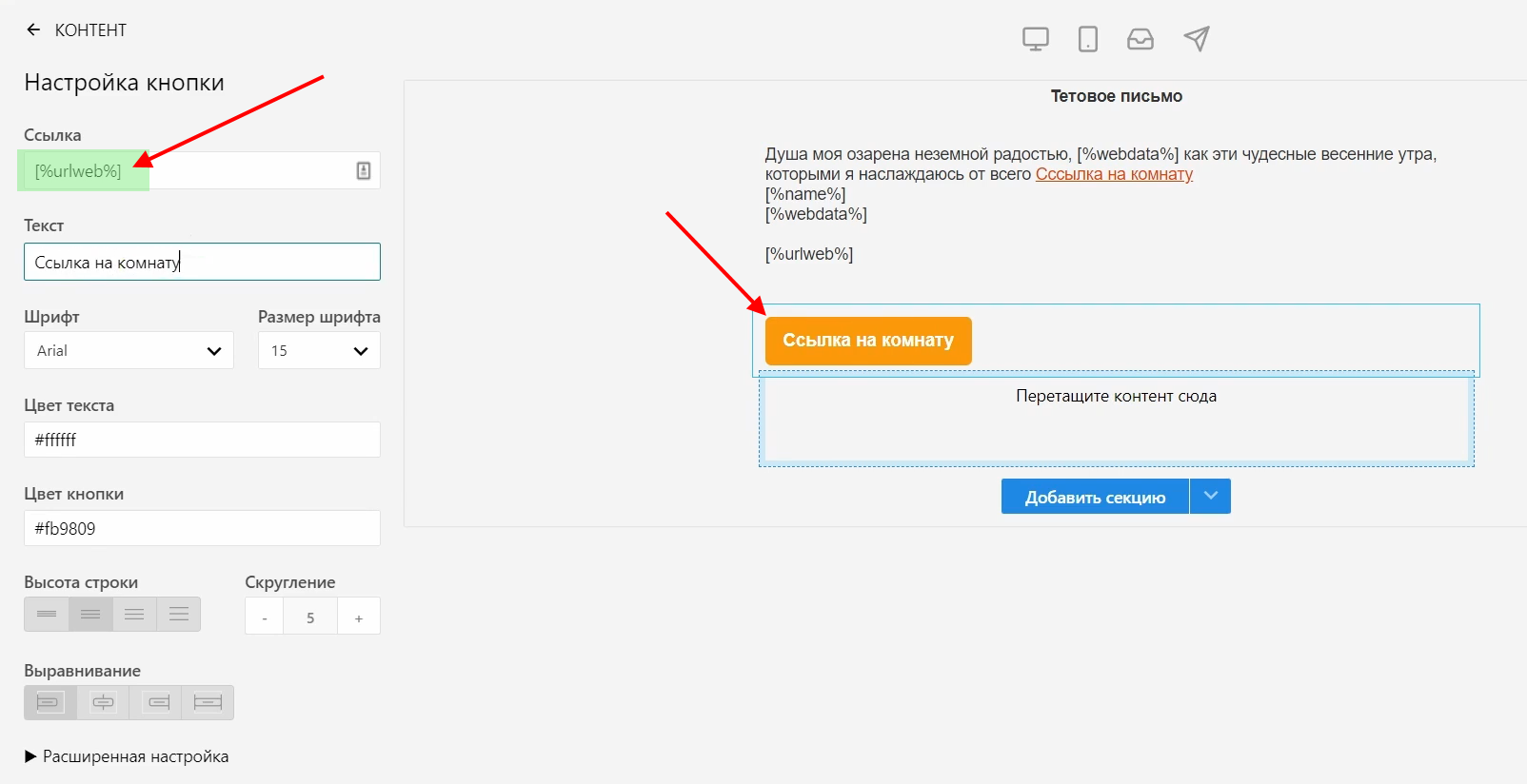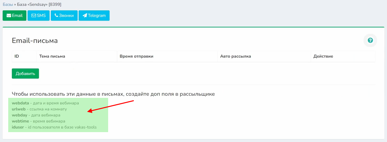 3 Когда вы создали шаблон письма, вам нужно добавить шорткоды (дополнительные поля) для рассылки, которые автоматически будут подставляться в рассылку