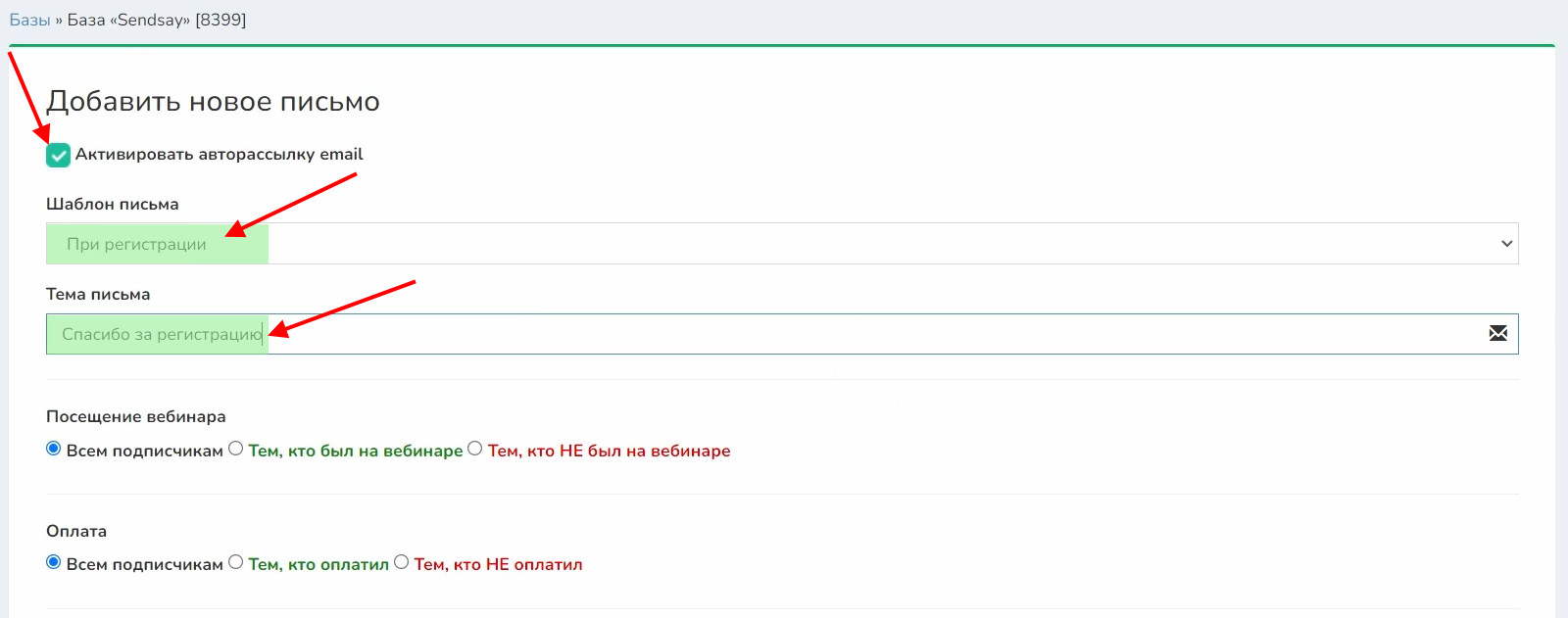 3 Настройка рассылки по тем, кто был на вебинаре