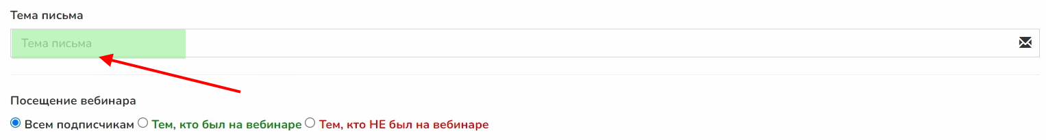 «Всем подписчикам» означает, что рассылка будет направлена всем участникам вебинара, зарегистрированным на определенные дату и время, а не всем подписчикам в базе.