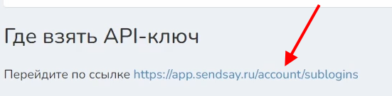 4 Переходим в сервис «Sendsay» по ссылке, указанной под полем для API-ключа