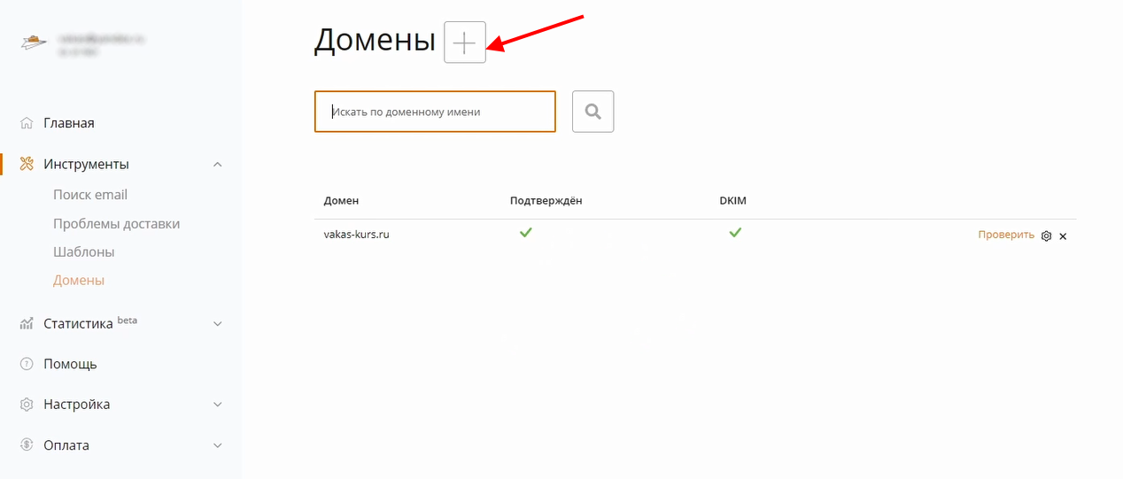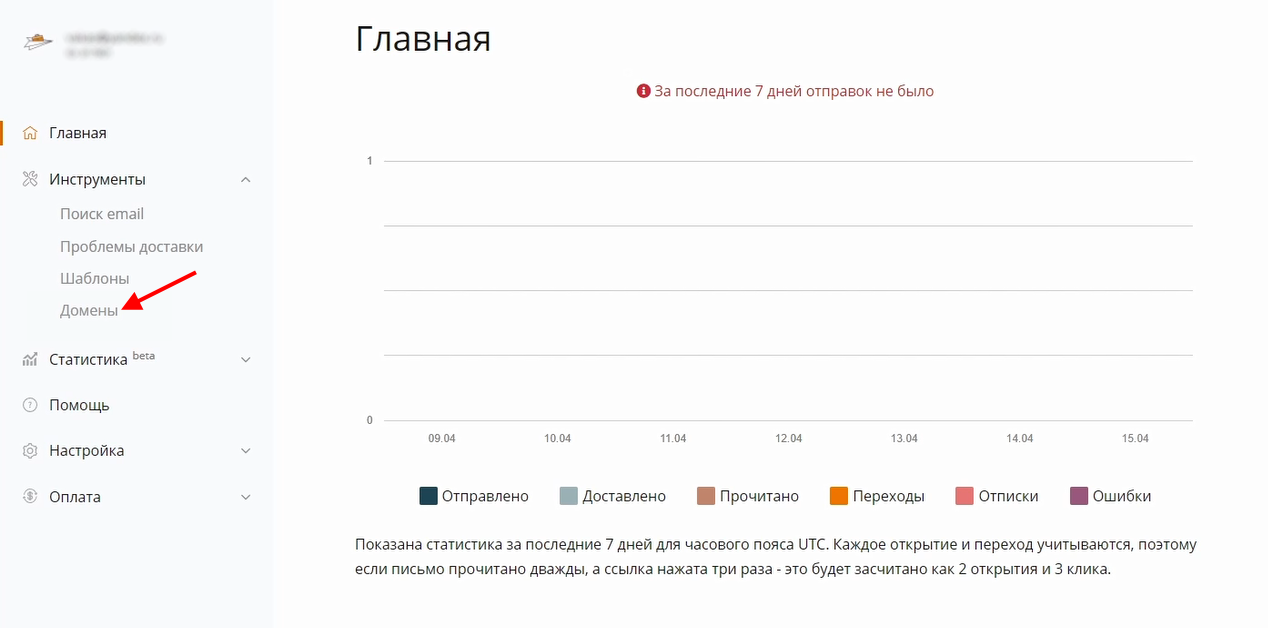 1 Перейдите в сервис UniOne. В меню слева выберите «Инструменты» — «Домены»