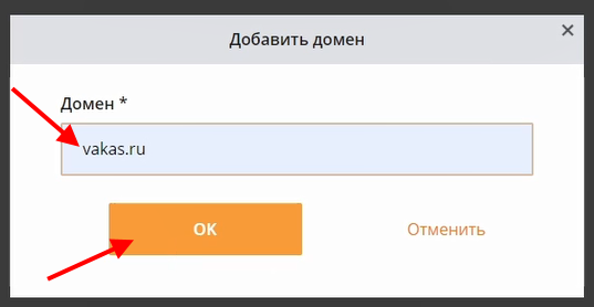 3 Укажите домен и нажмите на «ОК»