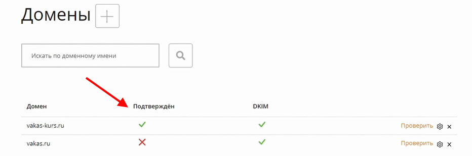 5 После того, как все настройки будут выполнены, напротив домена будут проставлены галочки