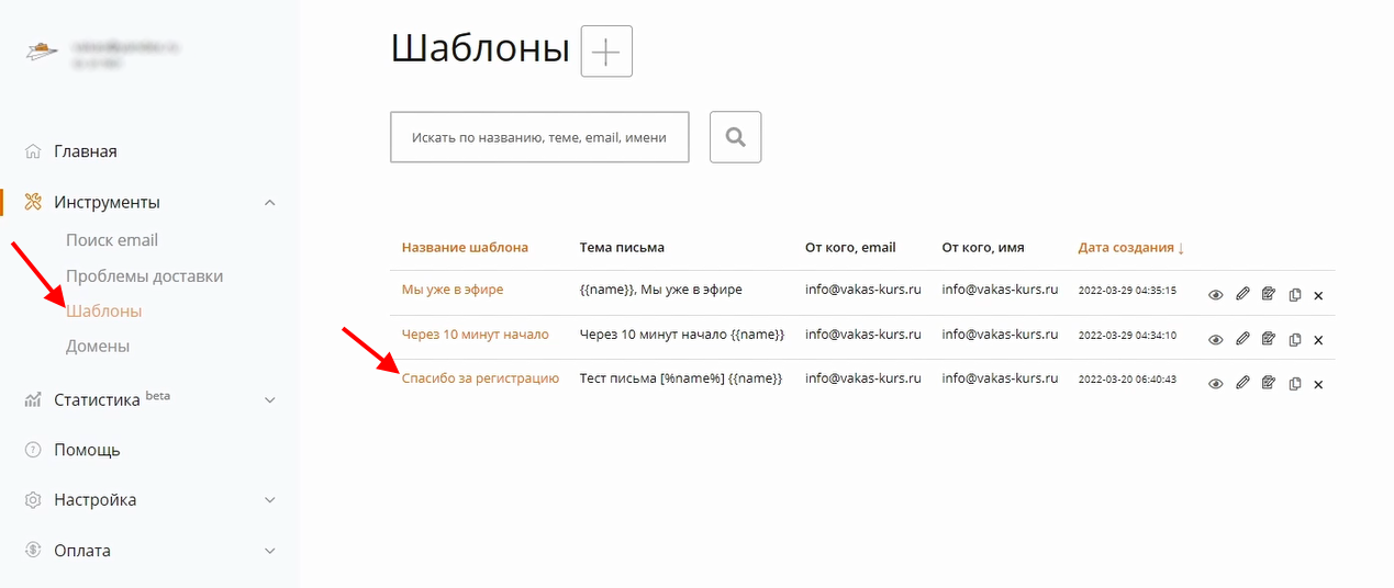 1 Перейдите в сервис UniOne. В меню слева выберите «Инструменты» — «Шаблоны»