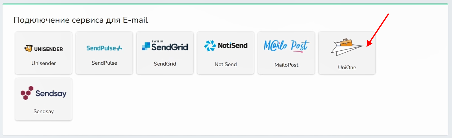 2 Выберите сервис «UniOne»