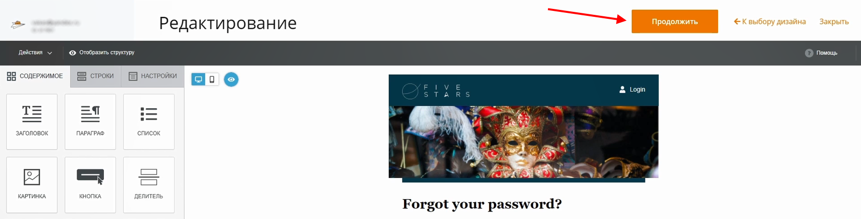 3 В открывшемся окне редактирования нажимаем на «Продолжить»