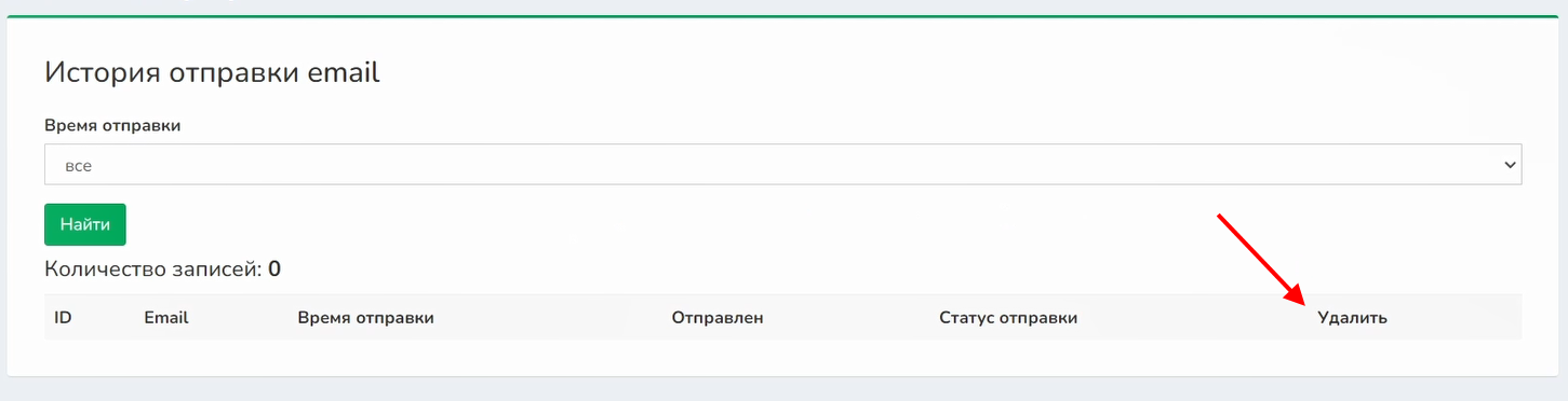 11 В истории отправки email можно удалить рассылку из очереди, нажав напротив нужной рассылки «Удалить»