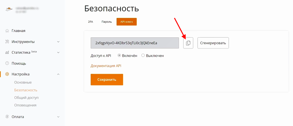 5 Вернитесь в сервис Vakas-tools. Вставьте скопированный ключ и сохраните
