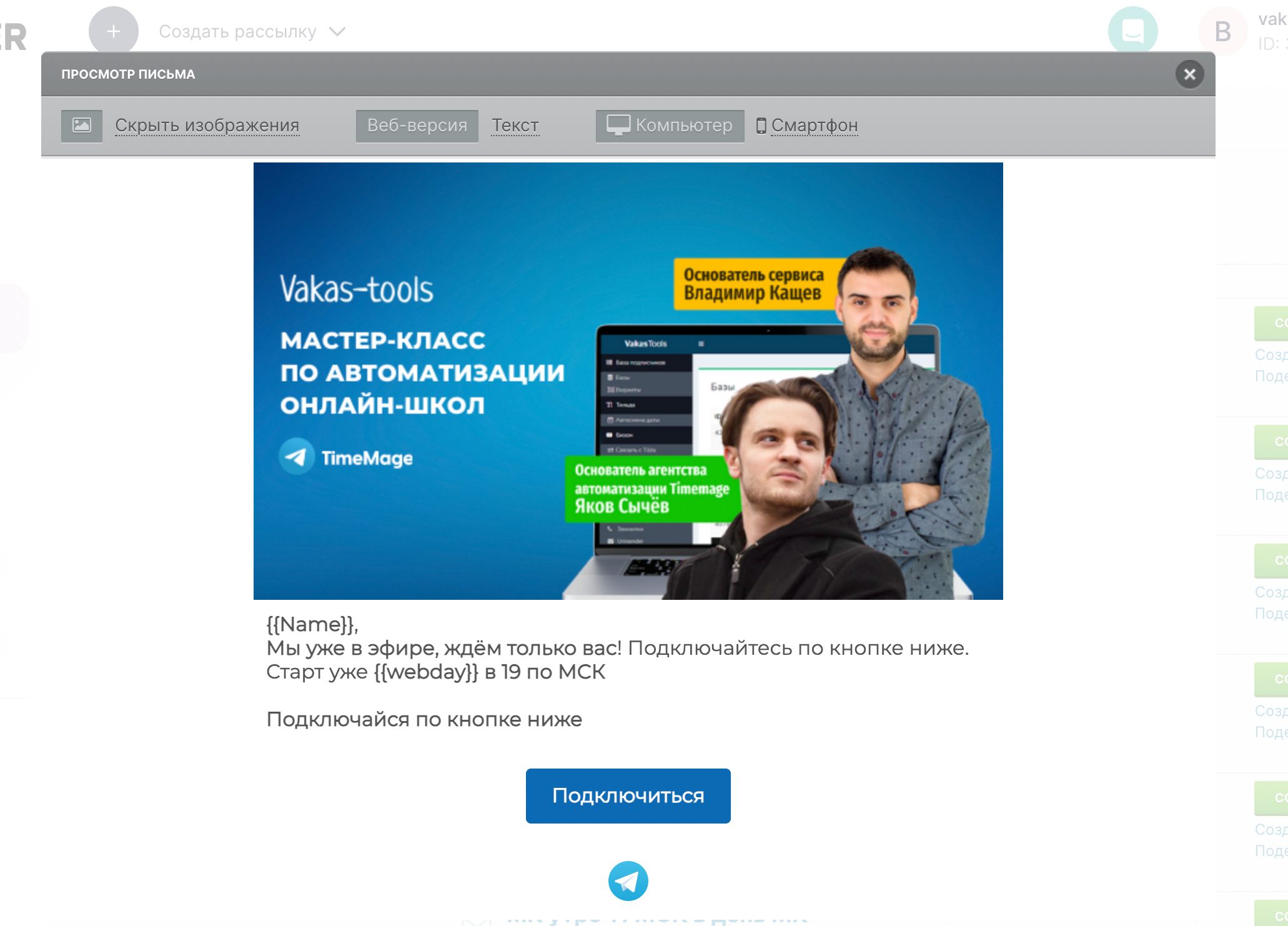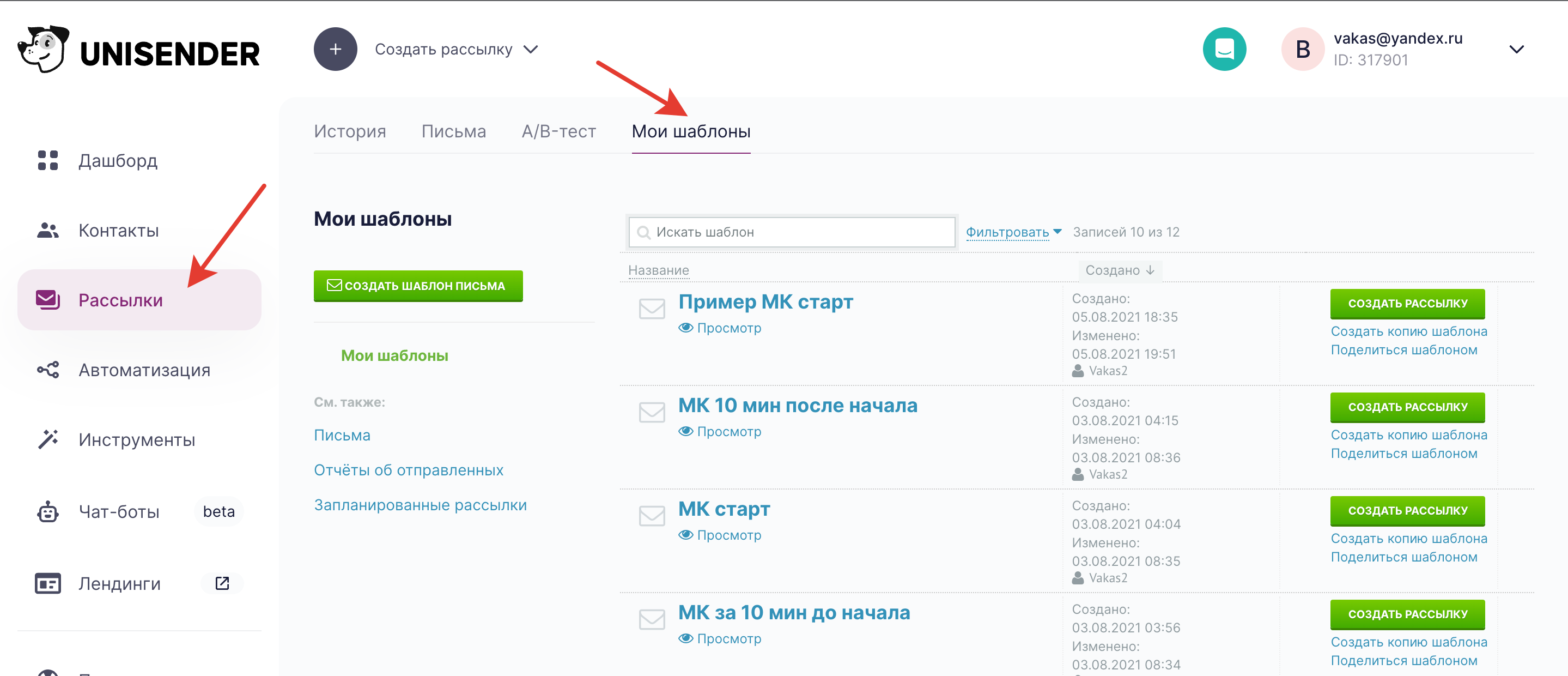 1 Заходите в Рассылки > Мои шаблоны