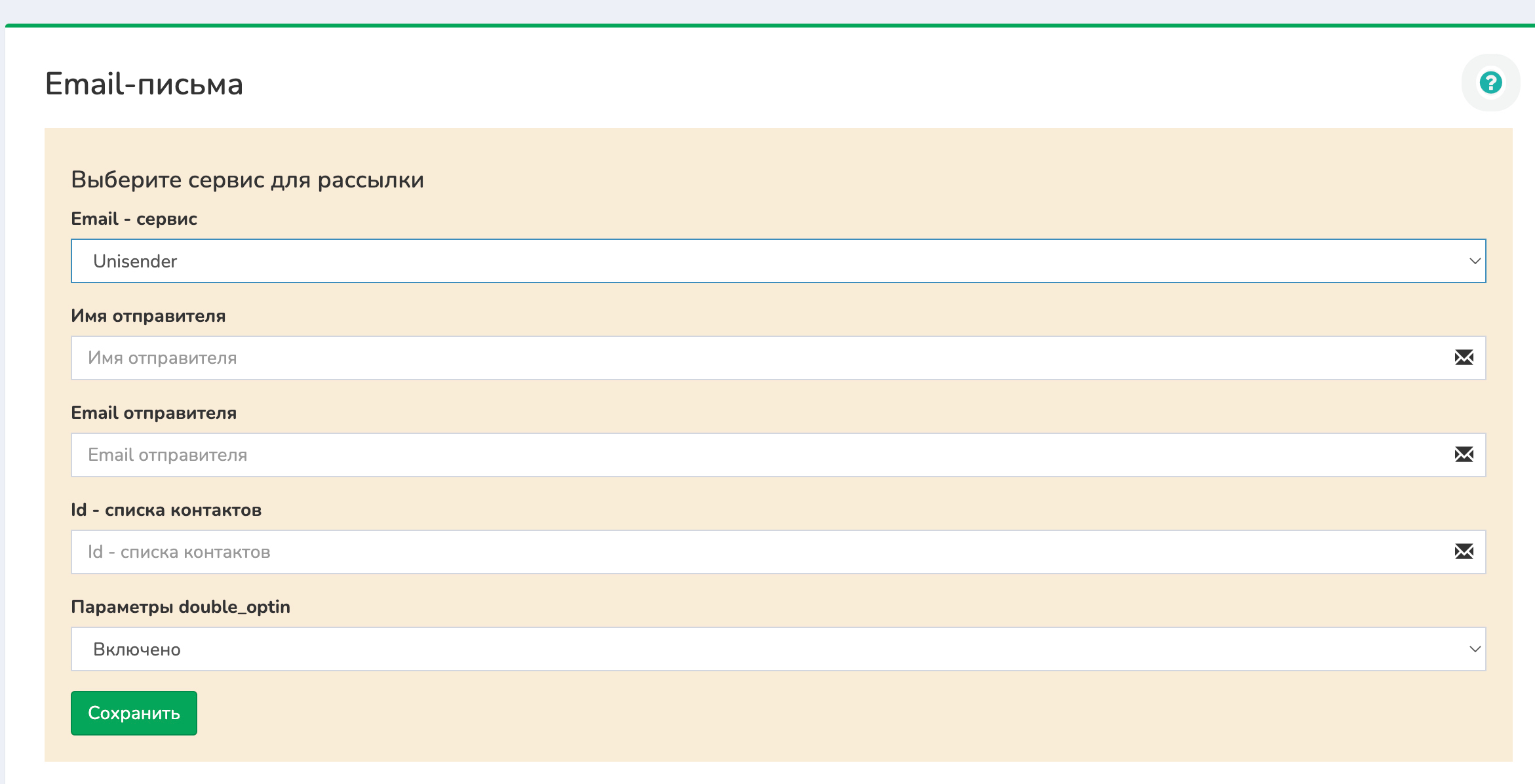 1 Переходите в настройки Email-рассылки. Сервис выбираете «Unisender»