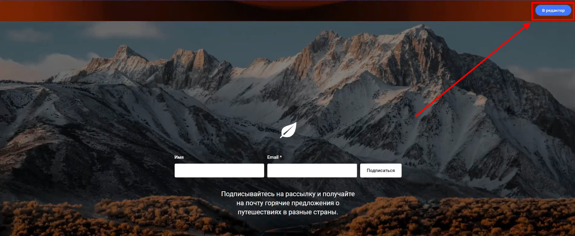 3. Перейдите в flexbe на лендинг. Справа сверху нажмите на кнопку «В редактор».