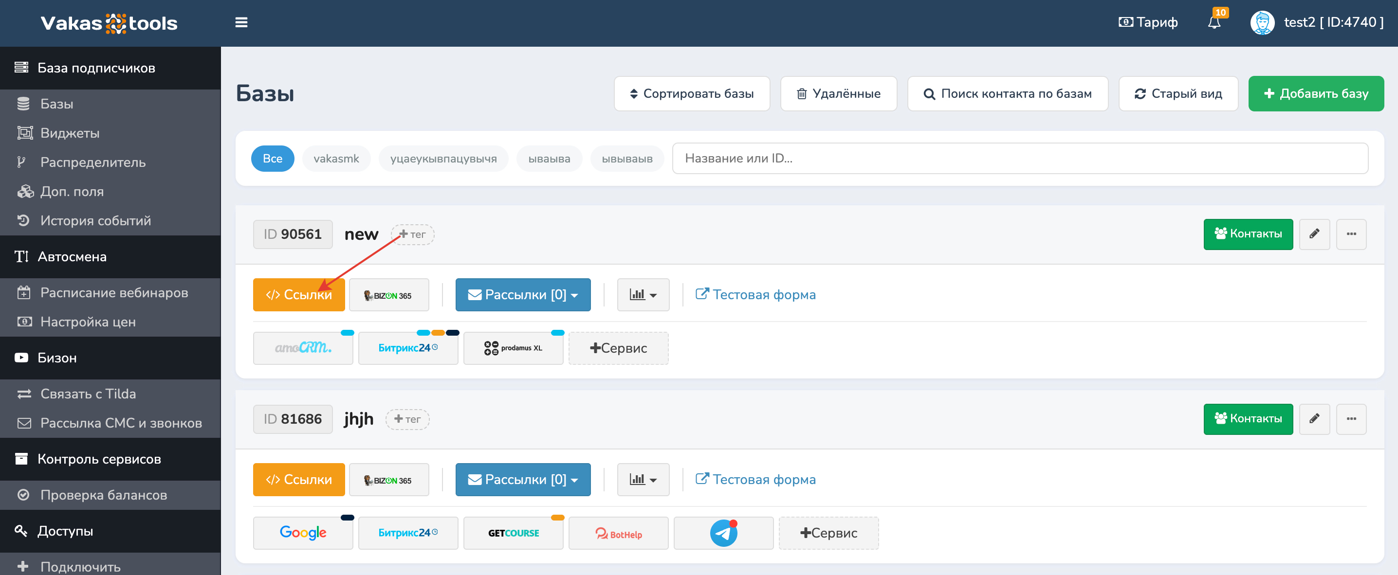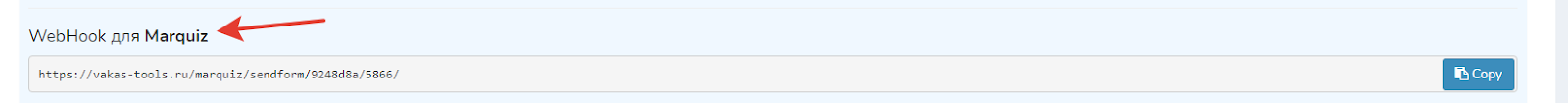 Создаете базу в Vakas-tools или работаете уже с имеющейся базой. Создаете квиз в Marquiz с нужными вопросами и ответами. Добавляете webhook в Marquiz. Для этого у нужной базы, заходите по кнопке [Ссылки] и копируете ссылку.
