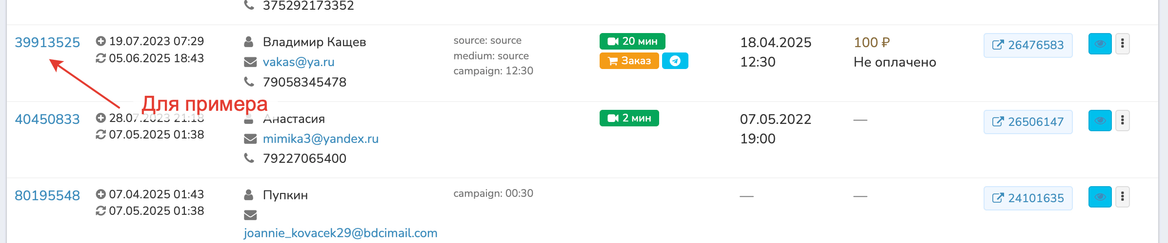 Нажимаете ID контакта и по ссылке «Посмотреть все данные с регистрации».