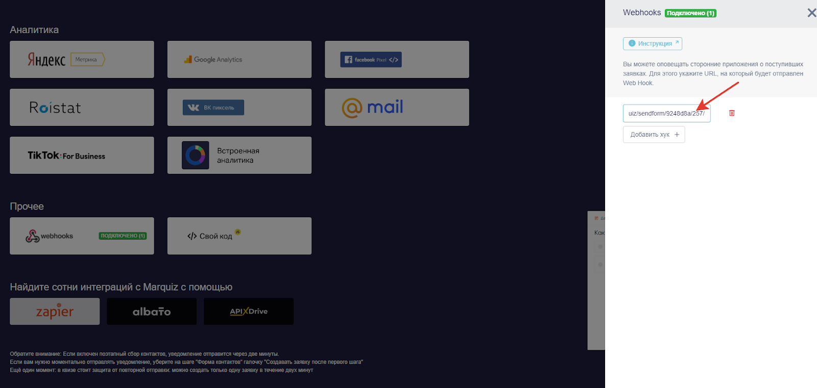 Подключение Marquiz