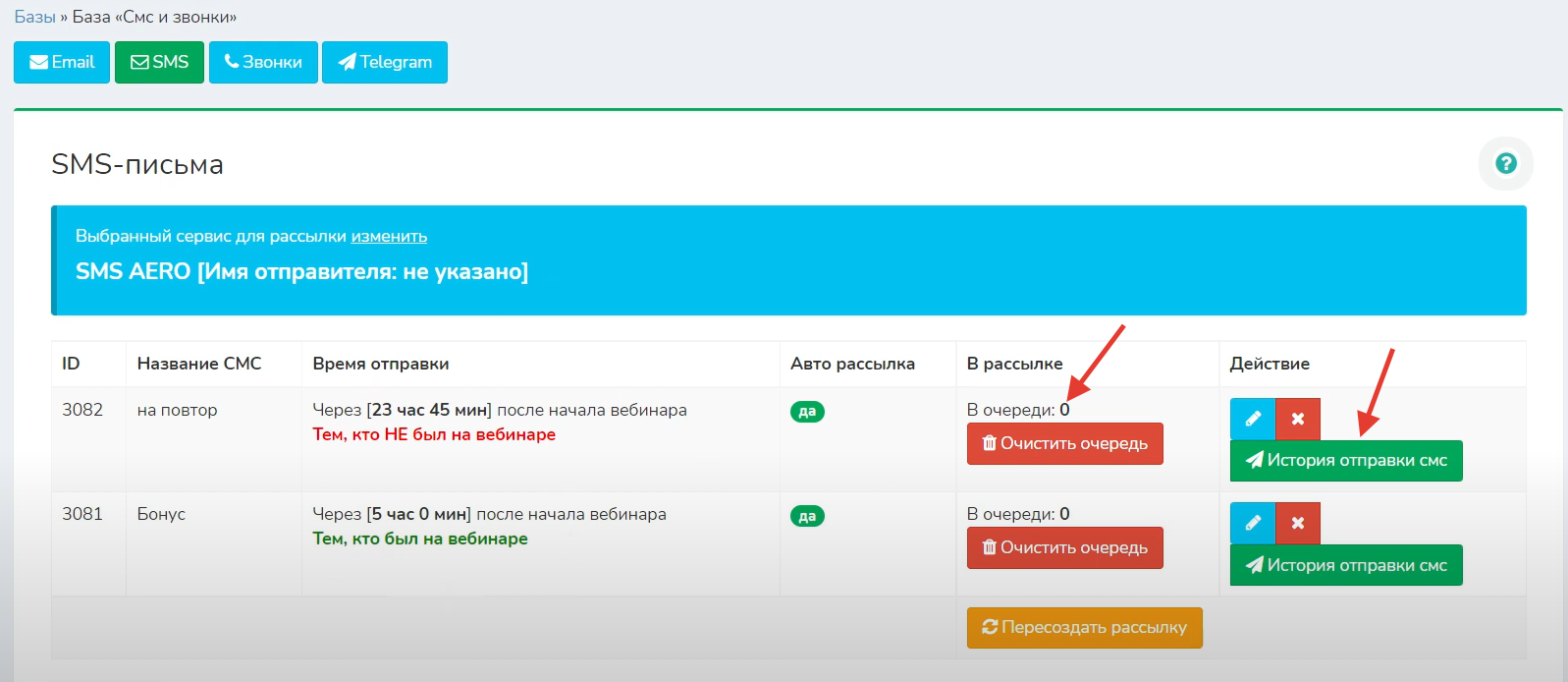 5 В очереди количество участников отображаться не будет, поскольку список получателей рассылки формируется в момент отправки СМС