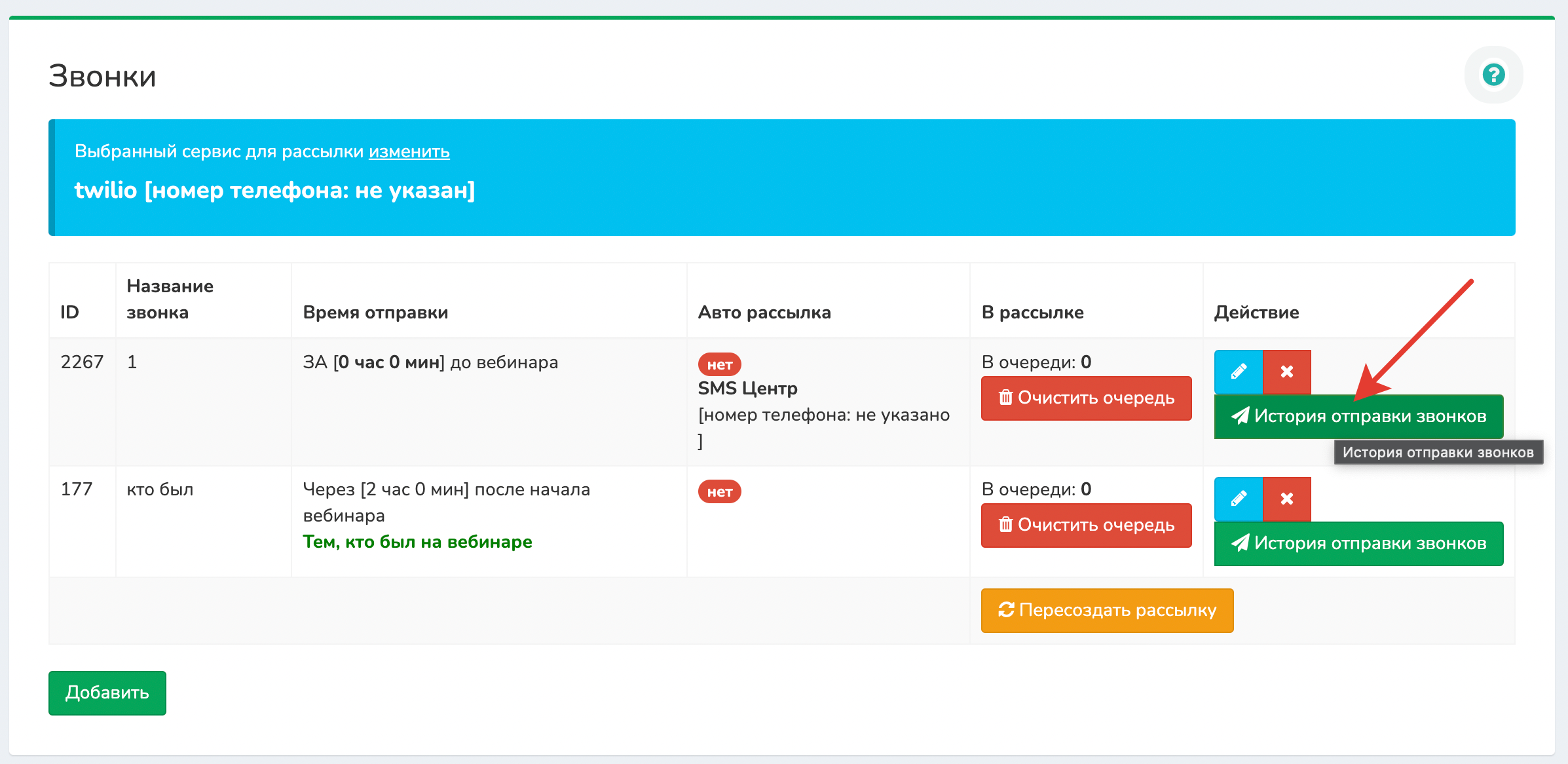 13 История отправки можно посмотреть по кнопке «История отправки звонков»