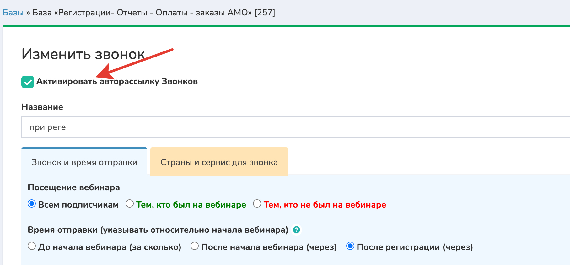 9 Поставьте галочку «Активировать авторассылку Звонков»