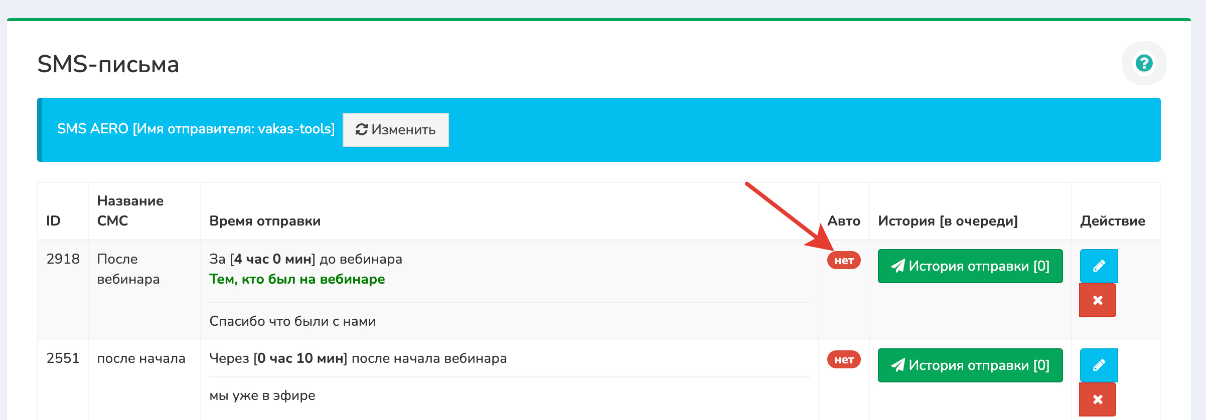 2 Установите галочку «Активировать авторассылку СМС». Нажмите на кнопку «Сохранить»