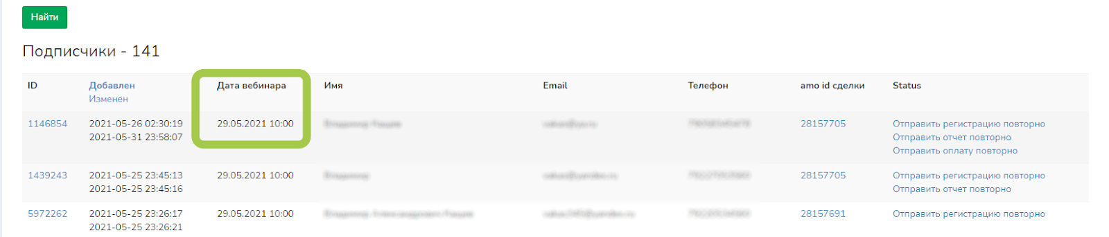 Обязательно проверяйте, собираете ли вы номер телефона и email участников, иначе рассылки будет некому отправлять. Также проверяйте, правильно ли подтягивается дата вебинара, проверить можно тут.