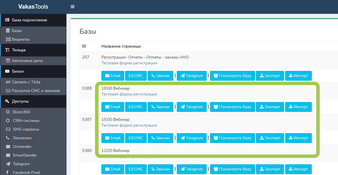 В зависимости от промежутка времени регистрации, попадал на ближайший вебинар. Зарегистрировался с 10 до 11, попал на вебинар на 11. Зарегистрировался с 11 до 15, попал на вебинар в 15. У каждого времени своя база, своя комната, своя ссылка на вебинар и своя рассылка смс, звонков, email.