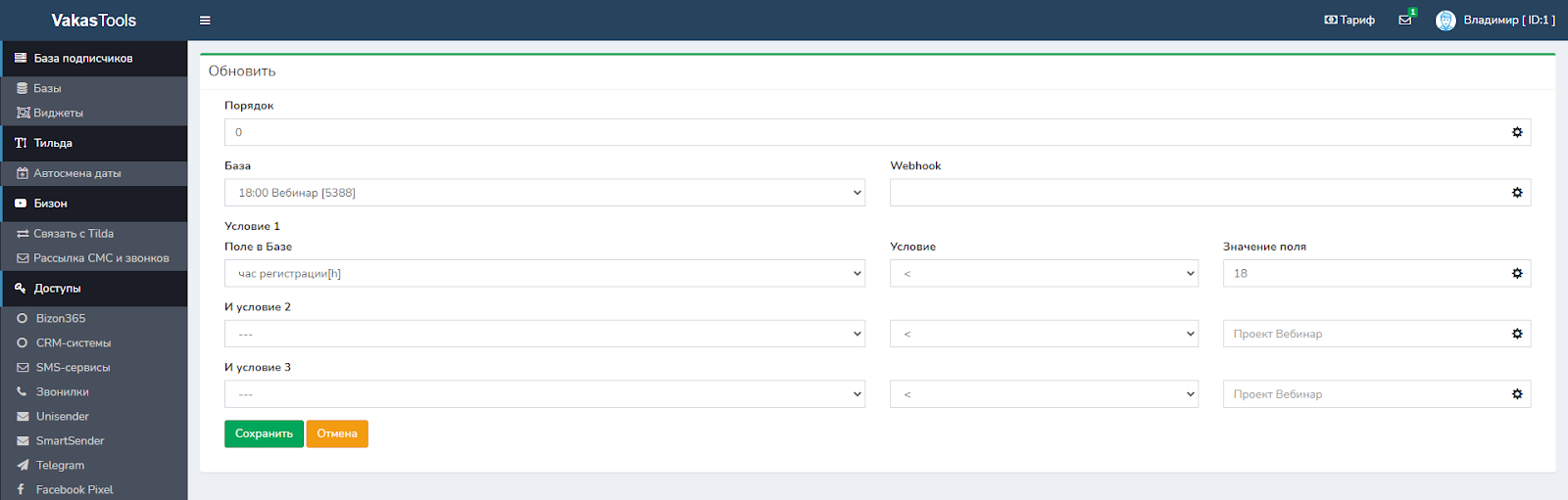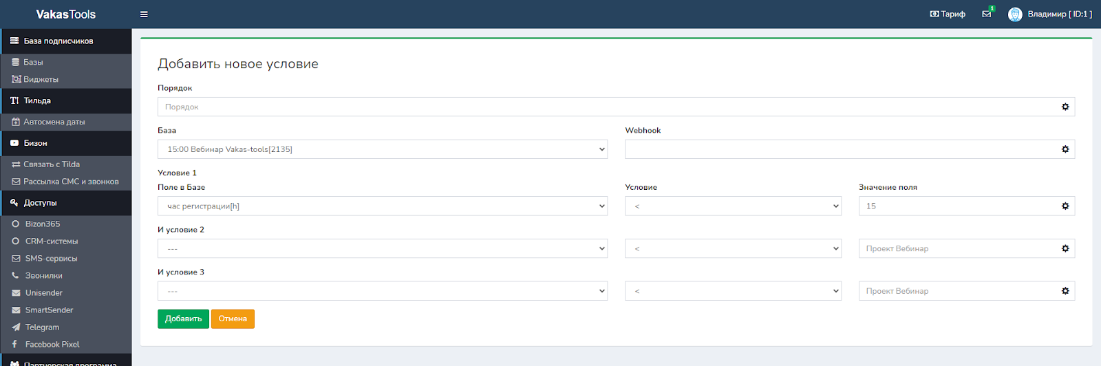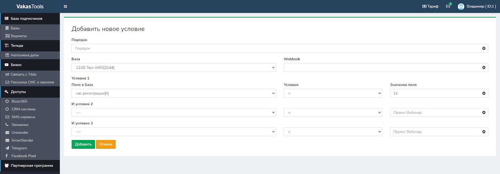 НЮАНС: обязательно обращайте внимание, какое условие вы используете, если это час регистрации, то условие срабатывает только для часа, минуты игнорируются. Например: вы хотите, чтобы люди, которые регистрировались после 18 часов, попадали в базу вебинар на 12. То правильное условие: час регистрации >17. Если поставите >18, люди, которые регистрируются с 18 до 19 не попадут в это условие.Потому что условие проверяет по часам а не по минутам.