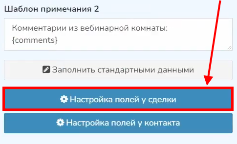 Поле «Шаблон примечания 2» включает в себя комментарии из вебинарной комнаты. Комментарии отделены от остальных данных для удобства работы с ними.