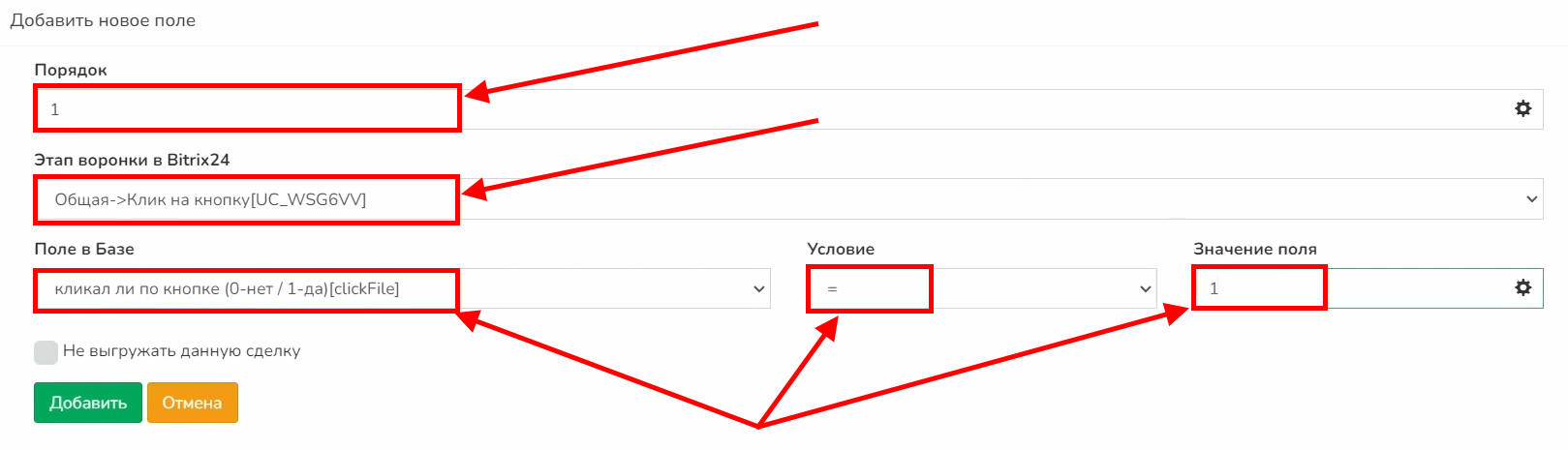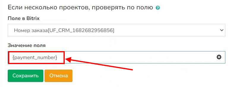 3 Выберите в «Поле в Bitrix» поле «Номер заказа»
