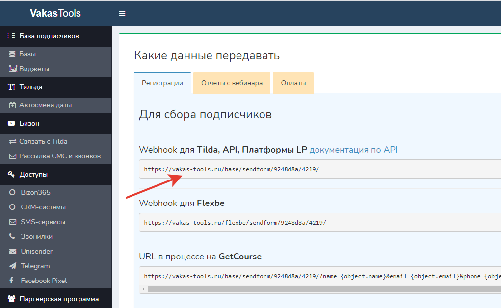 Документация / Сбор и передача регистраций / Сбор регистраций с Tilda в Vakas-tools