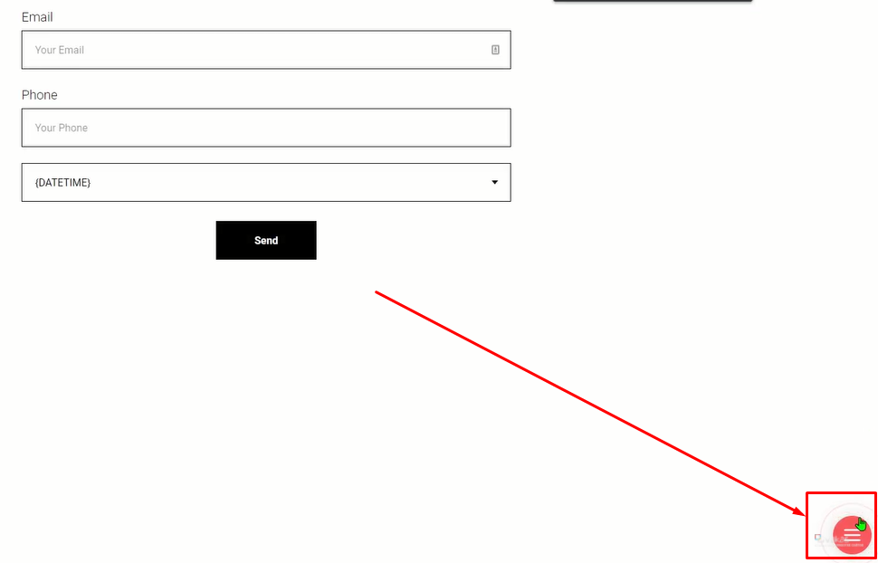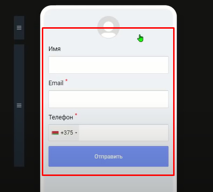 Нажимаем на форму чтобы открыть виджет и видим поля для ввода данных, для теста заполняем данные, и нажимаем [Отправить].