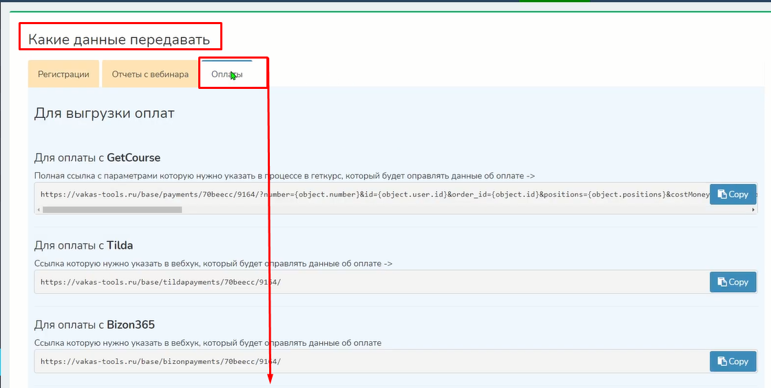 Документация / Передача заказов и оплат / Выгрузка заявок и оплат с Taplink в Vakas-tools