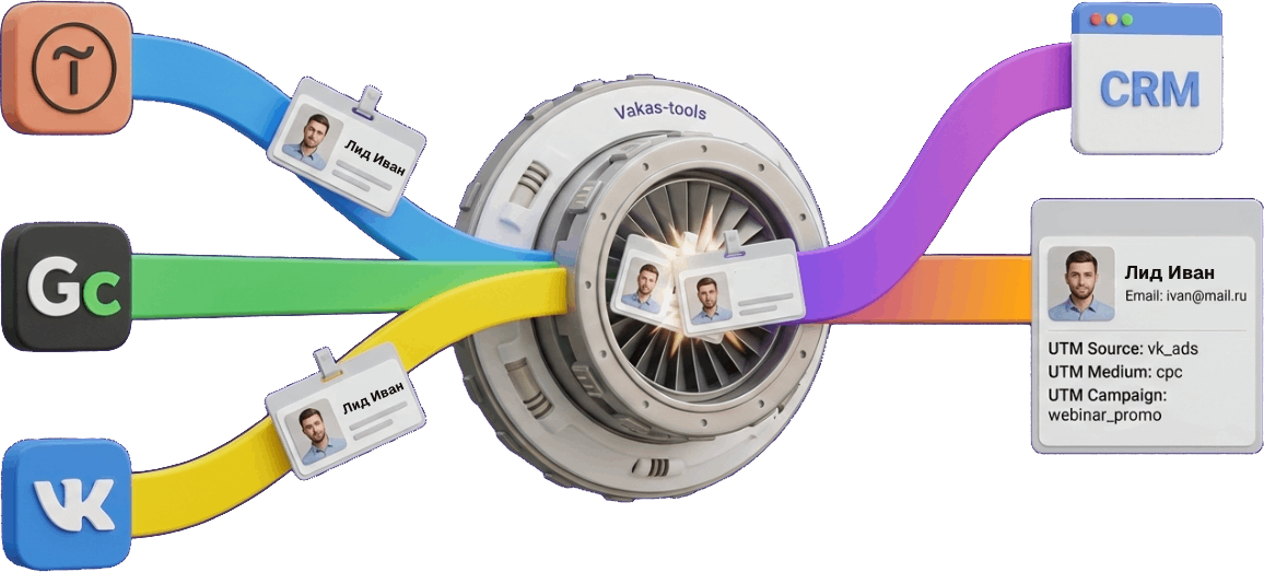 Разрозненные сервисы воруют ваши данные. Объедините их в единый механизм с передачей UTM-меток. Система не плодит дубли и обновляет историю клиента, вместо того чтобы создавать копии.
